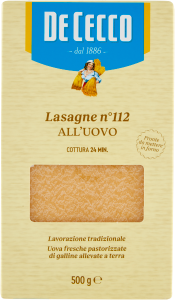 Lasagne De Cecco to wysokiej jakości makaron jajeczny, idealny do przygotowania klasycznych włoskich dań. Wykonane z wyselekcjonowanej pszenicy durum i świeżych jaj od kur z wolnego wybiegu, zapewniają autentyczny smak i doskonałą konsystencję. Płaty nie wymagają wstępnego gotowania, co ułatwia i przyspiesza przygotowanie pysznej zapiekanki.